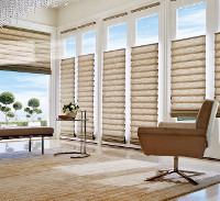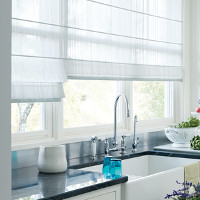 Featuring a sculpted, modern look, Hunter Douglas Roman Shades offer distinctively elegant styling. Energy efficient Architella shades are available in this style. Choose from a range of fold styles, fabrics, colors and textures to meet all your light-filtering and room-darkening needs.