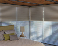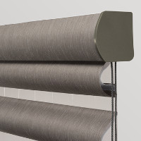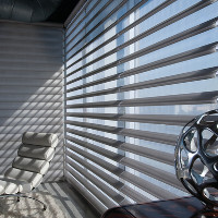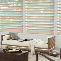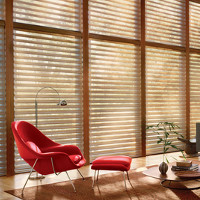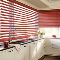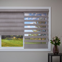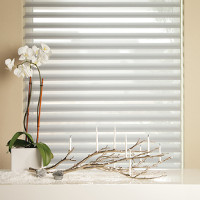 By combining a Silhouette shading and a room-darkening roller shade in a single headrail, you have three choices of light control: translucent, light dimming and room darkening. The back roller shade can be raised completely into the headrail to be hidden from view. It can be independently positioned in the window to any height.
